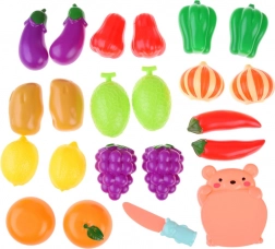 V balení najdete prkénko ve tvaru medvídka, nožík a rozmanité kusy ovoce a zeleniny v krásných barvách pro nekonečné scénáře hry.