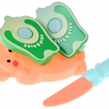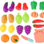 V balení najdete prkénko ve tvaru medvídka, nožík a rozmanité kusy ovoce a zeleniny v krásných barvách pro nekonečné scénáře hry.