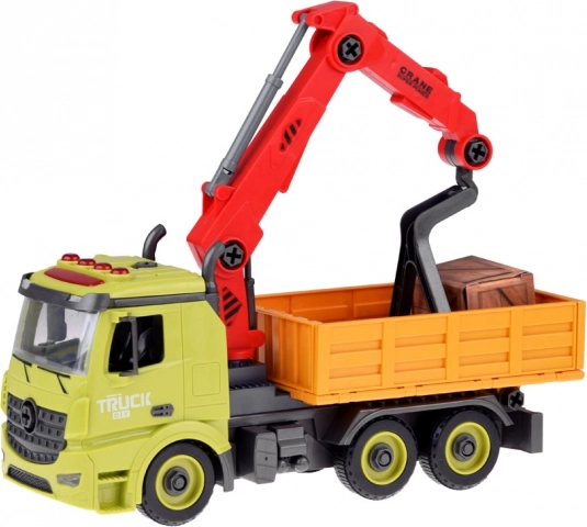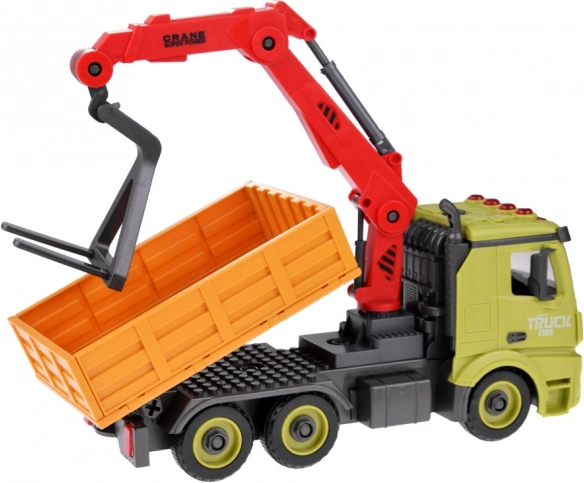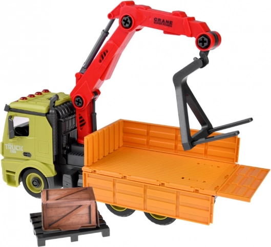 Tento plastový jeřábový náklaďák v živých barvách je připraven na hodiny zábavy. Otočné a výsuvné rameno zvedne bednu, otevíratelná bočnice usnadní nakládku a frikční pohon postará se o plynulý rozjezd bez baterií. Pro interaktivní hraní nechybí zvukové efekty – start motoru, klakson, couvací tón i maják.