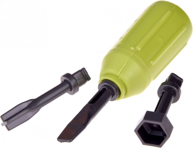 Součástí je ergonomický šroubovák s třemi výměnnými bity, díky kterému mohou děti vozidlo rozšroubovat na díly a znovu sestavit. Tato aktivní a pohybová hra podporuje jemnou i hrubou motoriku, soustředění, logické myšlení a zručnost.