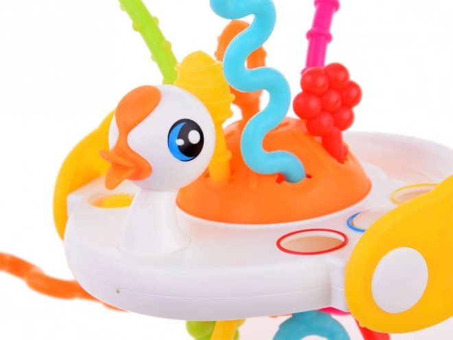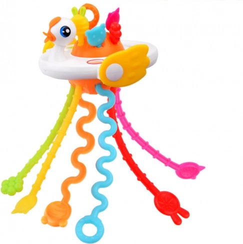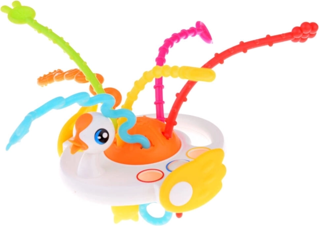 Tato barevná senzorická hračka ve tvaru labutě podporuje přirozený rozvoj smyslů a dovedností vašeho miminka. Díky kombinaci různých povrchů, měkkých tlačítek a tahacích šňůrek se zvukem a vibrací děti objevují nové podněty, trénují úchop a posilují koordinaci oko–ruka.
