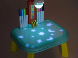 Rameno projektoru snadno nastavíte do výšky i sklonu, takže obraz je dobře viditelný na ploše stolku i na stěně. Děti mohou pohodlně obkreslovat a tvořit vlastní příběhy.