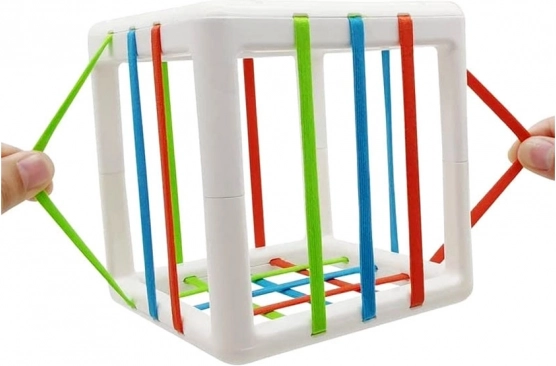 Pružné gumové pásky kladou jemný odpor, takže si děti trénují úchop, sílu prstů i koordinaci oko–ruka.