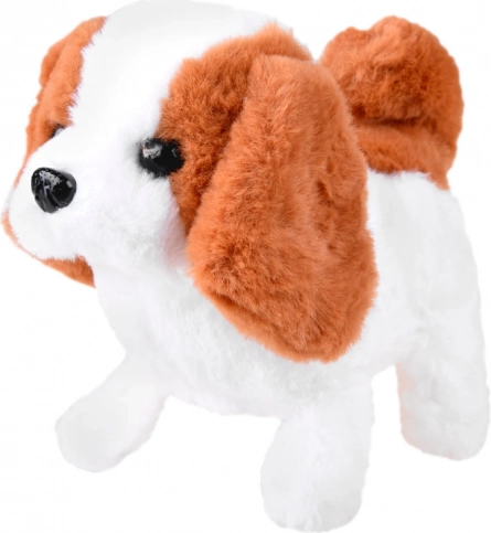 Pejsek chodí dopředu, štěká, vrtí ocáskem a při hlazení po hlavě vydává jemné štěněcí zvuky – ideální pro interaktivní hraní.
