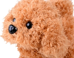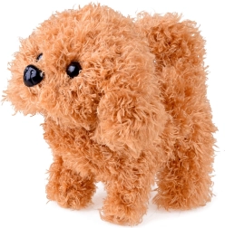 Pejsek chodí vpřed, štěká, vrtí ocáskem a po pohlazení vydává roztomilé štěněcí zvuky. Měkký karamelový kožíšek s kudrlinkami láká k mazlení.