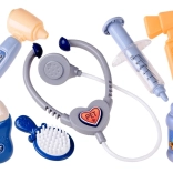 - Kompletní výbava malého veterináře: stetoskop, stříkačka, otoskop, neurologické kladívko, kartáč, lahvička a imitace léků.