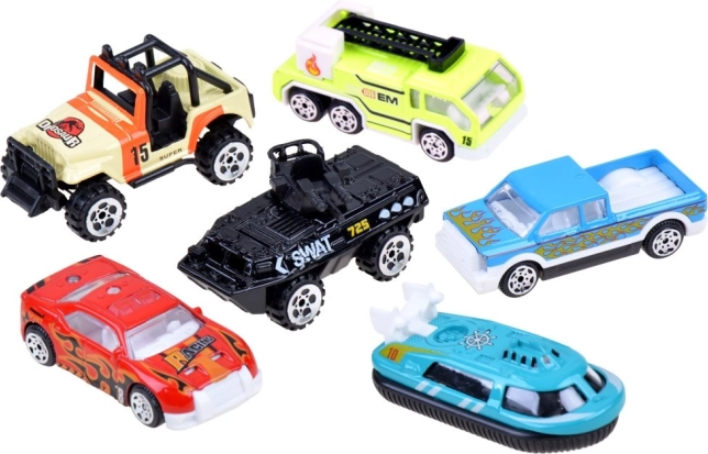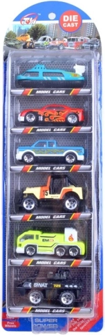Tato pestrá sada přináší mix vozidel – od závodních aut po speciální stroje – ideální pro kreativní hry, závody i tematické mise. Kovové karoserie zajišťují odolnost, zatímco plastové pohyblivé části dodávají autíčkům realističnost.