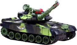 Užijte si akční souboje s RC tankem v lesním maskování. Model zvládá jízdu vpřed/vzad, otáčení na místě a má otočnou věž o 180° na každou stranu (celkem 360° pokrytí). Při zásahu se rozsvěcí/zhášejí kontrolky stavu bitvy a tank simuluje realistický odhoz (zpětný ráz), který umocňuje atmosféru skutečného bojiště.