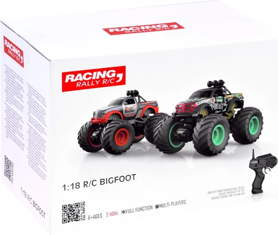 Užijte si akční jízdu v terénu s RC monster truckem Big Foot. Díky pohonům ovládaným na 2,4 GHz můžete jezdit současně ve více lidech bez nežádoucího rušení. Velká gumová kola s výrazným běhounem zajišťují stabilní přilnavost i při ostrých zatáčkách.