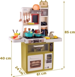Tato interaktivní kuchyňka přináší dětem autentický zážitek z vaření. Disponuje sporákem se dvěma plotýnkami, troubou, lednicí, myčkou, dřezem s funkčním kohoutkem v uzavřeném okruhu a horními poličkami s háčky. Po naplnění nádržky (cca 40 ml) se z jednoho hořáku při vaření zvedá realistická pára a plotýnky se rozsvítí. Digestoř nabízí melodie a zvuky, které hru ještě oživí.