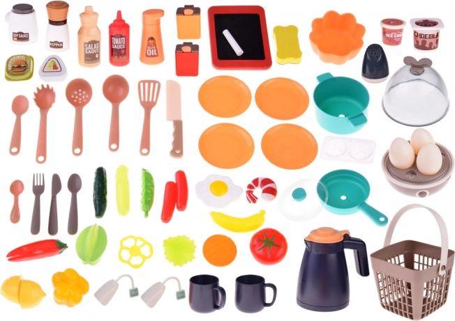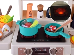 Rozsáhlá dětská kuchyňka se 63 díly nabízí realistické světelné a zvukové efekty, bezpečnou páru při vaření a funkční kohoutek s oběhem vody. Nechybí trouba, myčka, lednice, pracovní deska ani panel s podsvícenými tlačítky a melodiemi. Ideální pro kreativní hru na vaření a rozvoj fantazie.