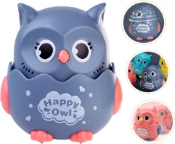 Tato roztomilá jezdící sovička je vyrobena z odolného plastu, má velké oči a hladké tvary bezpečné pro dětské ruce. Díky jednoduchému mechanismu stačí stlačit hlavičku a sovička svižně vyrazí – děti ji s radostí budou sledovat a přirozeně se motivují k pohybu a plazení.