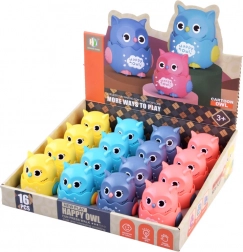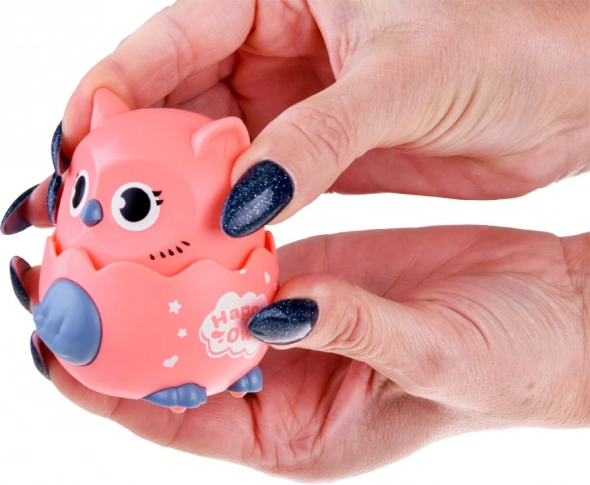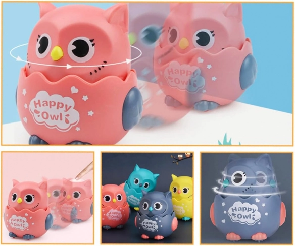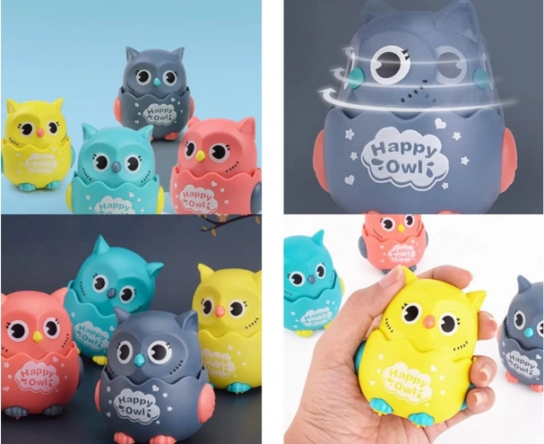 Barevná plastová sovička na kolečkách přináší zábavu pro nejmenší. Stačí ji položit na rovný povrch, stlačit hlavičku a sovka se rozjede vpřed. Díky kompaktní velikosti do dětské ručky je ideální pro první hry, podporuje pohyb, lezení a koordinaci. Otočením hlavičky se ozve příjemné chrastění, které zaujme smysly dítěte a může posloužit i jako antistresová hračka.