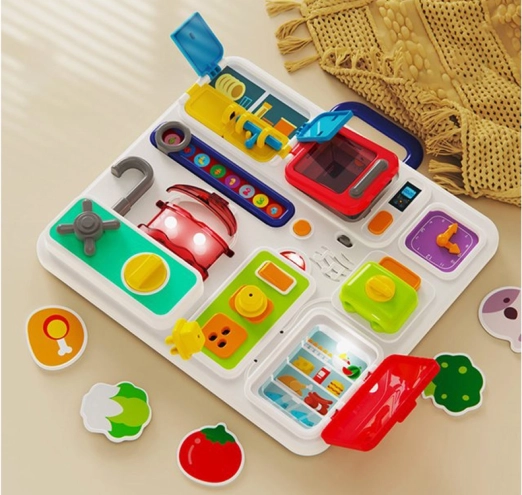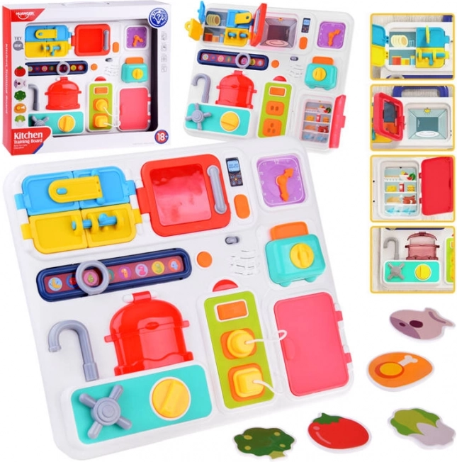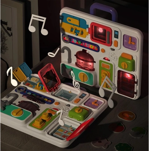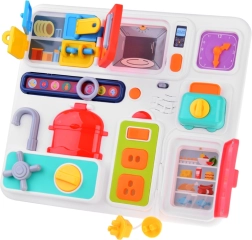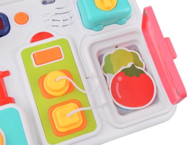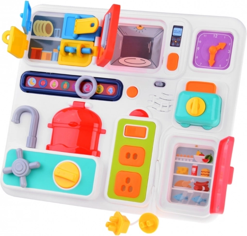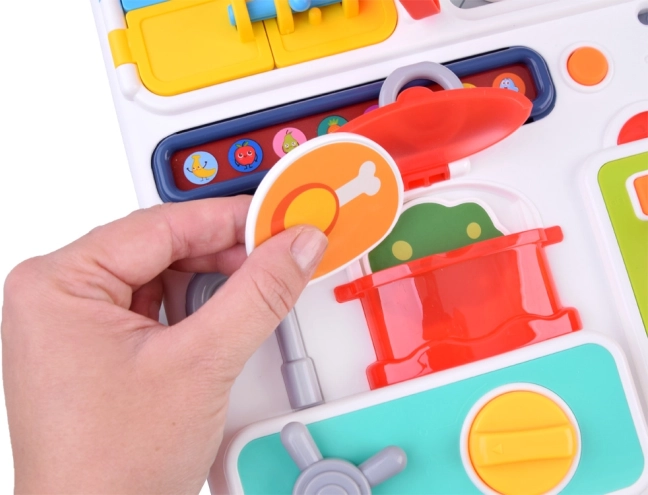 Interaktivní kuchyňská tabule se postará o hodiny zábavy pro vaše nejmenší. Je vyrobena z kvalitního plastu a obsahuje množství prvků, které stimulují rozumovou činnost. V doprovodu melodických zvuků a blikajících světel je každá hra jedinečná.