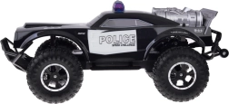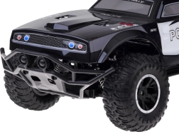 Tento velký monster truck je vyroben z pružného plastu, což mu dodává lehkost. Velká gumová kola s odpruženými tlumiči zajišťují skvělou přilnavost k terénu a snadnou manipulaci v zatáčkách. Vozidlo je vybaveno nastavitelnou konvergencí kol, což přispívá k lepšímu ovládání. Skutečnou atrakcí je jeho červeno-modré blikající osvětlení, které napodobuje policejní signály a svítí ve tmě, což vytváří realistický zážitek.
