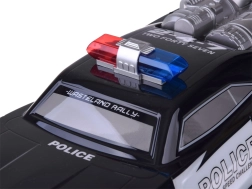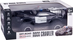 Sada obsahuje policejní monster truck, dálkové ovládání na frekvenci 2,4 GHz, 500mAh akumulátor 7,4V a USB nabíječku.