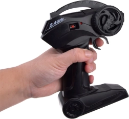 Dálkové ovládání pracuje na frekvenci 2,4 GHz, což poskytuje stabilní připojení a umožňuje přesné řízení vozu.