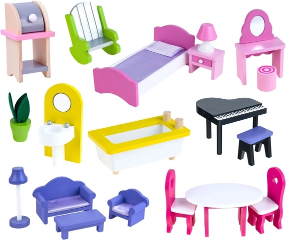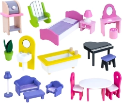 Domeček přichází s 19 kusy kvalitního dřevěného nábytku od koupelny po obývací pokoj, což umožňuje děti tvořit individuální interiéry.