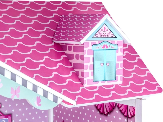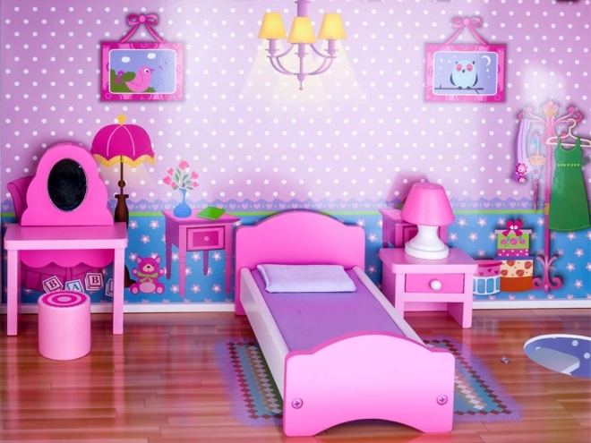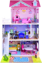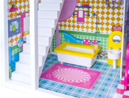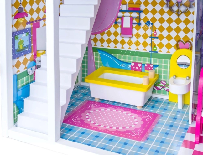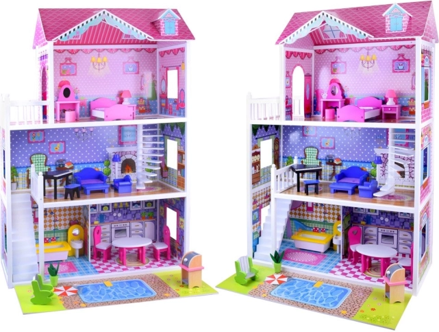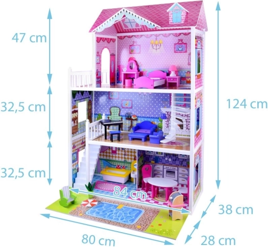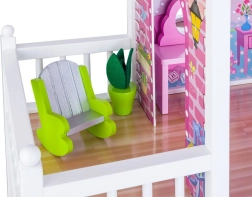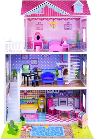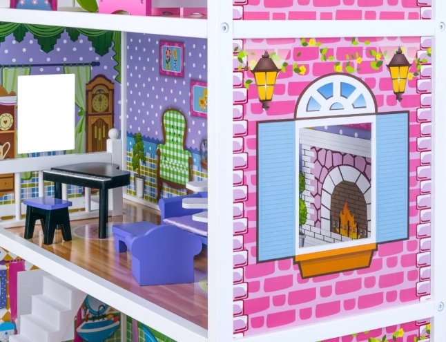 Užijte si hodiny zábavy s tímto třípatrovým dřevěným domečkem, který je ideální pro malé milovníky panenek. Domeček obsahuje: