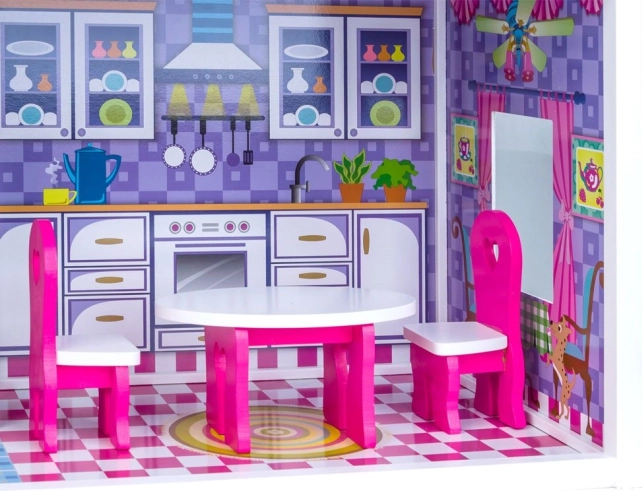 Domeček je plně vybaven 19 kusy dřevěného nábytku jako jsou stůl, židle, gauč a další. Díky svému robustnímu designu a kvalitnímu zpracování poskytuje pevnou strukturu pro dlouhé hodiny hry.