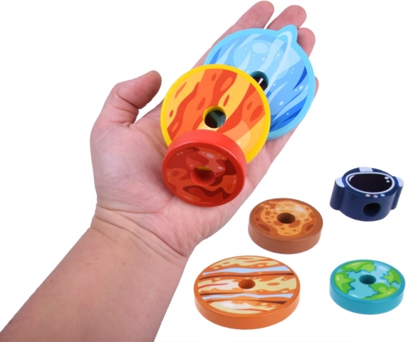 Disky představují planety a základna slunce, což dělá ze skládanky neobyčejný zážitek, který rozvíjí dětskou kreativitu.