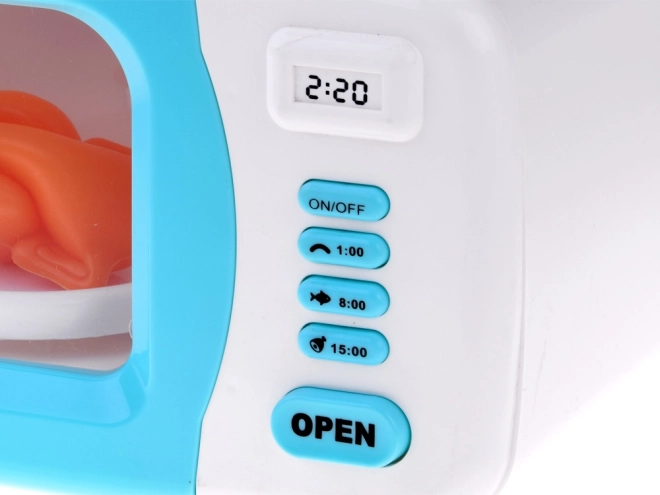 Zábavné hraní napomáhá dětem rozvíjet jemné motorické dovednosti a povědomí o domácích činnostech. Mikrovlnná trouba je vyrobena z plastu v bílo-modré barevné kombinaci a je realistickou replikou kuchyňského spotřebiče.