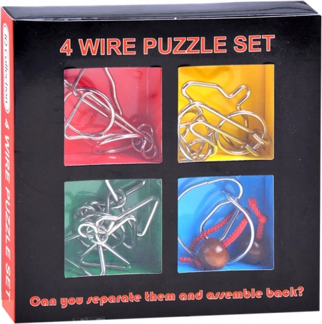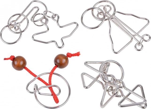 Sada obsahuje několik typů drátěných hlavolamů s odlišnou konstrukcí – od kruhů a kroužků až po tematické tvary. Každý kus je jiná výzva.