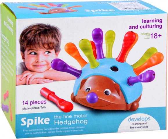 Roztomilý ježek s 12 barevnými bodlinami je interaktivní hračka pro děti od 18 měsíců, která rozvíjí jemnou motoriku, koordinaci ruka-oko, poznávání barev a základy počítání. Bodliny se snadno vkládají a vyjímají a po hře je uložíte dovnitř hřbetu pro rychlý úklid.