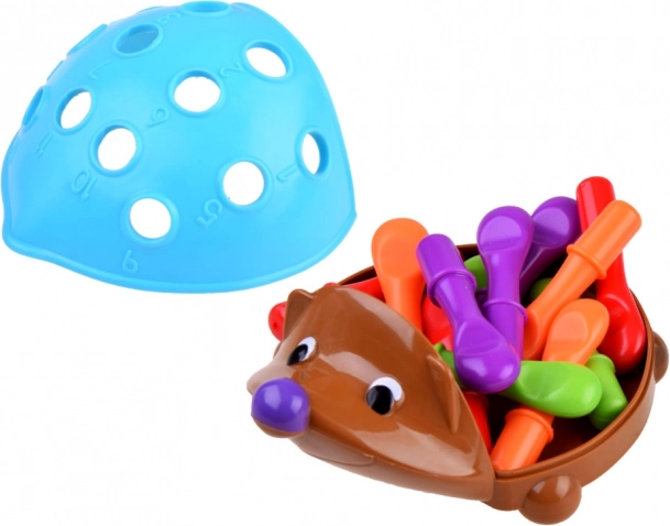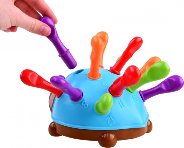 Vyražená čísla na hřbetu vedou děti k přirozenému učení základů matematiky při vkládání barevných bodlin.