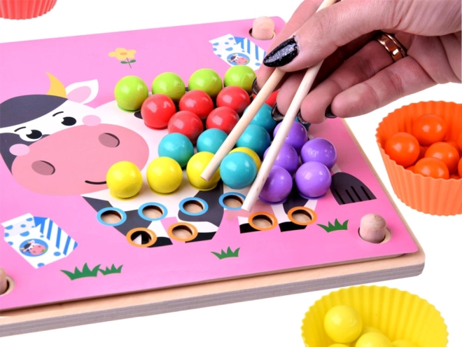 Montessori mozaika z dřevěnými kuličkami – vzdělávací ukládačka
