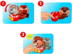 Tato chytlavá hra s kousajícím psem přináší jednoduchá pravidla a spoustu smíchu. Hráči postupně mačkají zuby nebo „kosti“ v misce – jeden z nich je past. Když jej aktivujete, pes bleskově zaklapne tlamu. Vyhraje ten, kdo si udrží klidnou ruku a nejrychlejší reflex.