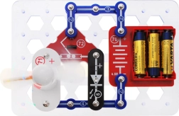 Sestavení je intuitivní a bezpečné díky plastové základně, konektorům a vodičům. Sada podporuje praktické učení hrou a přináší okamžitou zpětnou vazbu – děti vidí a slyší, co jejich obvod dokáže.