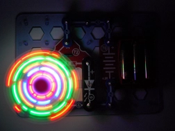 - Montážní základna, držák baterií, ventilátor (průměr cca 8 cm), barevný optický pírko-štětec, světelná trubička, konektory a vodiče, barevná dárková krabice