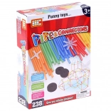 - Obsah balení: 122 flexibilních trubiček (cca 10 cm), 102 čtyřramenné konektory, 10 šestiramenných konektorů, 4 pěnová kolečka (průměr cca 3,5 cm)