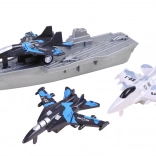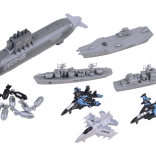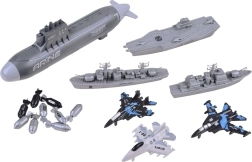Tato komplexní sada vojenské techniky přináší dětem svět námořních operací a letecké podpory. Díky kombinaci ponorky, lodí a stíhaček mohou vytvářet vlastní scénáře, plánovat strategie a rozvíjet fantazii. Realistické tvary, decentní barvy a potisky umocňují atmosféru námořní bitvy.