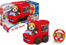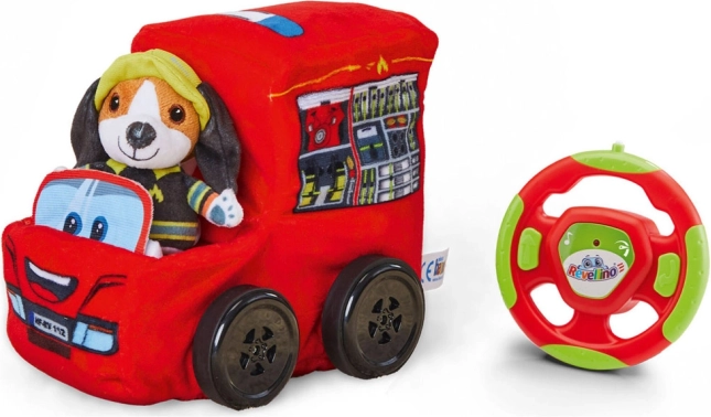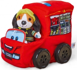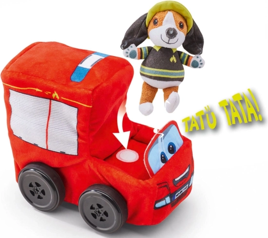 Hasičský vůz je také vybaven zvukovými efekty. Při stisknutí plyšového pejska slyšíte zvuky motoru a sirény. Dálkové ovládání umožňuje aktivaci klaksonu. Plyšový pejsek lze odepnout, což umožňuje děti vymýšlet různé příběhy.