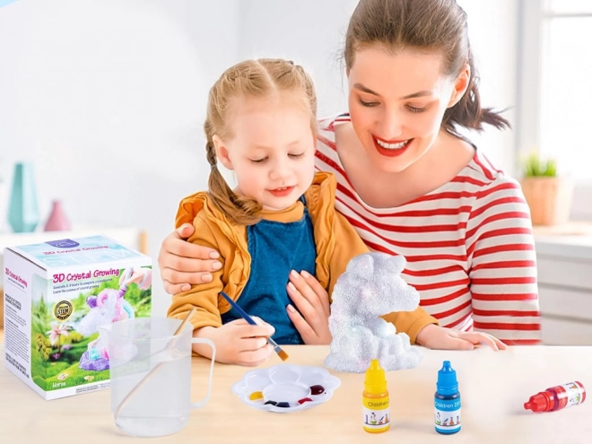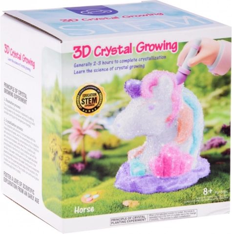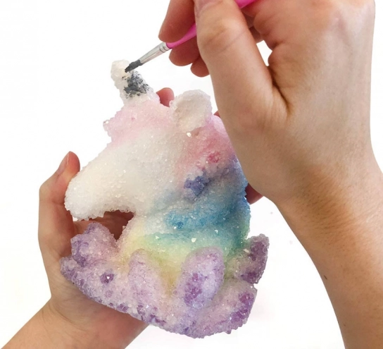 Ponořte figurku do připraveného roztoku a sledujte, jak na ní začnou růst krystaly. Po vysušení lze jednorožce nabarvit podle vlastní fantazie, což poskytuje nekonečné možnosti a posiluje kreativní myšlení dětí.