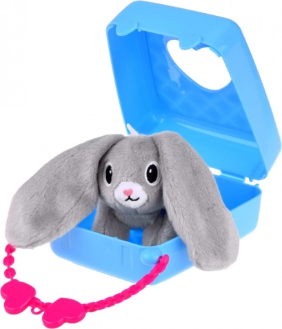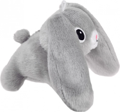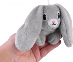 Plyšový králíček je vyroben z měkkého, příjemného na dotek materiálu. Jeho oči, nos a zábavná pusinka jsou vyšité, což zaručuje bezpečnost i pro mladší děti. Vyjímají se také jeho velké, padající uši a malý ocásek. Králíček stojí samostatně a na hlavě má malý poutko, díky kterému se může stát roztomilým přívěskem na batohu či kabelce.
