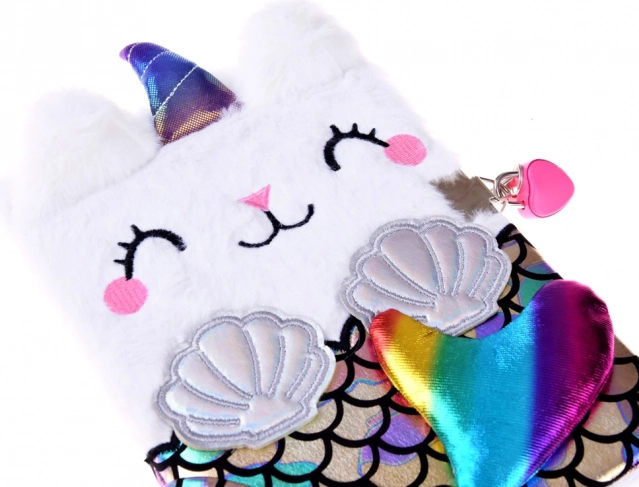 Každá dívka potřebuje svůj tajný deník! Tento deník je zdobený tématem kočičího jednorožce a mořské panny, což z něj činí okouzlující doplněk pro malé princezny. Chrání všechna tajemství díky malému zámku s klíčkem.