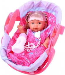 Set obsahuje plastovou panenku s pohyblivými končetinami a gumovým obličejem. Nosítko je vyrobeno z kvalitního plastu s pohyblivými rukojetěmi a popruhy pro připevnění například k zavazadlu. Dokonale zapadne do každého dětského pokojíčku. Díky dostatečné velikosti nosítka je možné do něj umístit panenku až do výšky 30 cm!