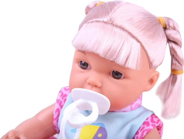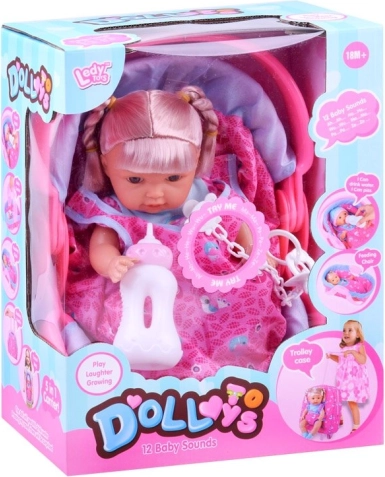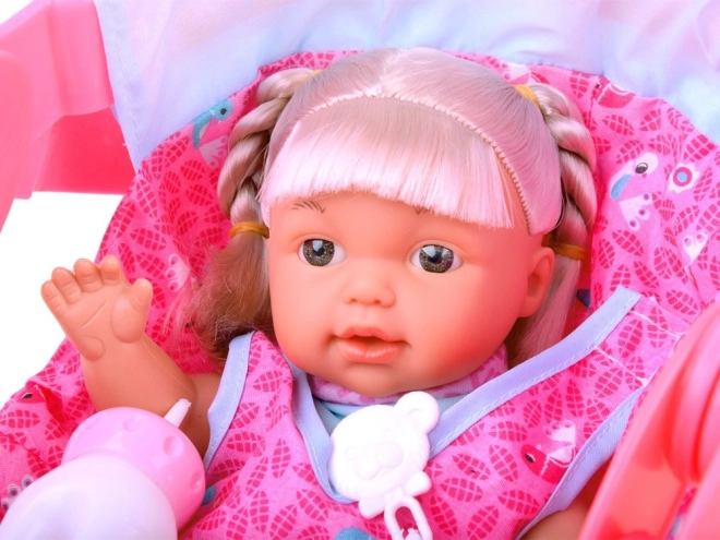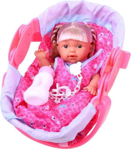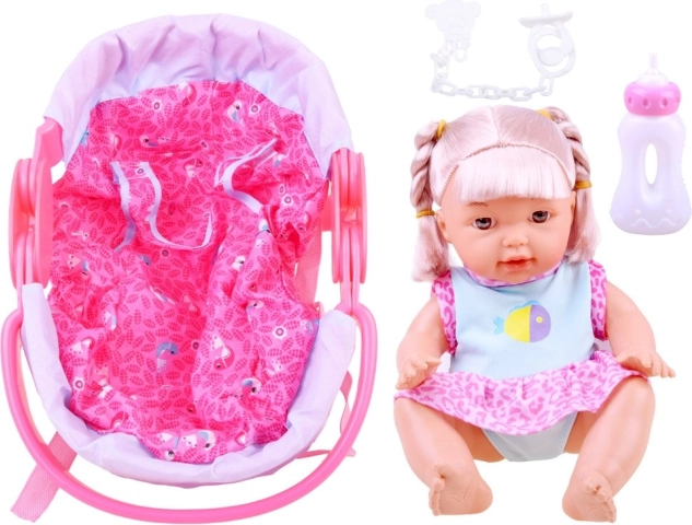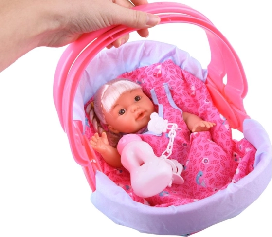 Součástí sady je roztomilá panenka, lahvička, dudlík na řetízku a nosítko.
