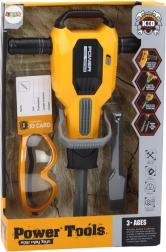 Dětské pneumatické kladivo ve žluté barvě nabízí více než jen hru - přináší autentický zážitek z práce na stavbě pro děti.