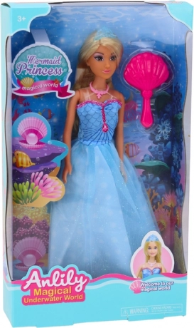 Kouzelná panenka ANLILY mořská princezna přenese děti do světa podmořských dobrodružství. Má dlouhé zlaté vlasy, elegantní modré šaty s mořským motivem a korunku. Součástí je kartáč na česání pro kreativní hraní a rozvoj fantazie. Ideální pro děti od 3 let, s certifikací CE a shodou s normou EN71.