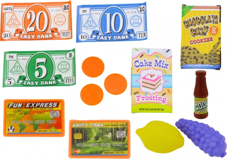 Součástí sady je také pokladna, která umožňuje simulovat proces nakupování. Kasa je vybavena digitálním displejem, který podporuje matematické úkony, jako je sčítání a odčítání, čímž podporuje nejen zábavu, ale také vzdělávací rozvoj dětí.