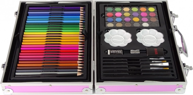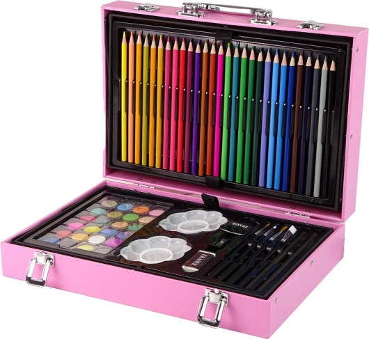 - 28× pastelky, 33× fixy, 24× olejové pastely, 24× akvarelové barvy v pánvičkách, 24× akvarelové barvy v tubách, 2× paletka, 4× štětec, 2× tužka, 1× ořezávátko, 1× plastická (chlebová) guma, 1× klasická guma, 1× kufřík