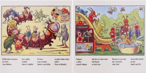 Objevte kouzelný svět broučků, kteří si užívají den na pouti. Komár, čmelák a kobylka hrají v orchestru, chrobáci zápasí na žíněnkách, luční koník závodí jako o život a u paní včelky je čeká sladká dobrota. Nechybí ani skvělá jízda na housence a spousta další legrace.