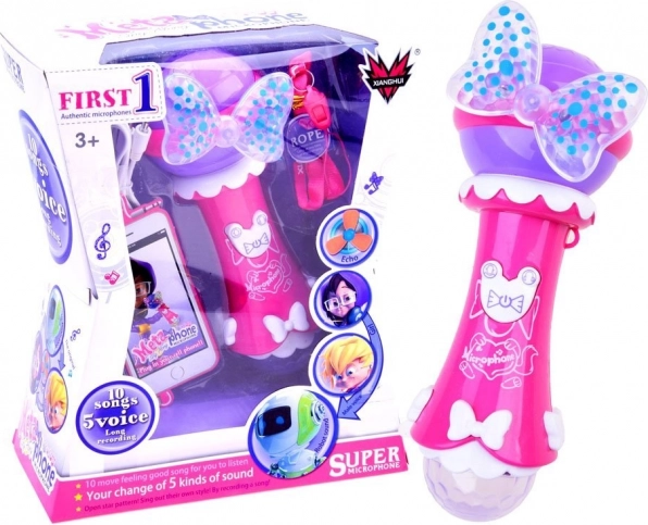 Staňte se hvězdou domácího pódia! Dětský karaoke mikrofon v růžovo‑fialovém designu s motýlkem přináší zábavu i kreativní hraní. Díky nahrávání a přehrávání si děti mohou poslechnout svůj výkon, vstup MP3 umožní zpívat s oblíbeným podkladem a světelné efekty dotvoří atmosféru koncertu.