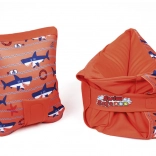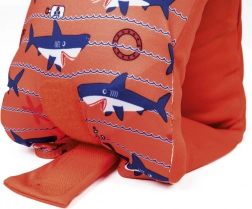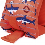 - Skvělá viditelnost – výrazná oranžová barva a roztomilé motivy rybek/žraloků.