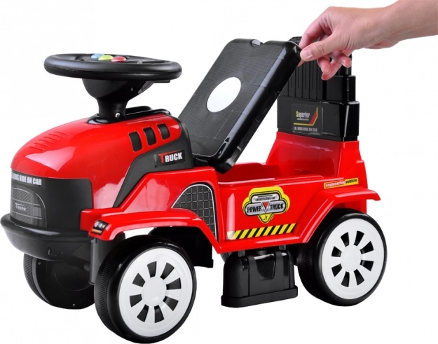 Dětské odrážedlo ve tvaru traktoru s přívěsem nabízí zábavnou a bezpečnou jízdu pro nejmenší. Disponuje melodiemi a světelnými efekty, otočným volantem, úložným prostorem pod sedadlem a praktickým přívěsem na hračky i nářadí. Lehká a stabilní konstrukce s zadní pojistkou proti převrácení je ideální na doma i na zahradu.