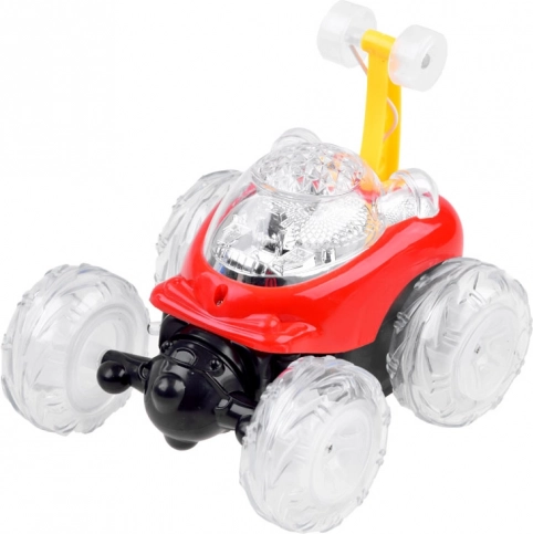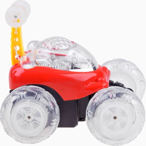 Mini kaskadérské autíčko je navrženo pro bláznivé triky a plynulé otočky. Přední osa umožňuje volné víření a rotaci, takže zvládne efektní otočky o 360°. Průhledná, svítící kola vytvářejí během jízdy působivé světelné efekty, které potěší děti i dospělé.